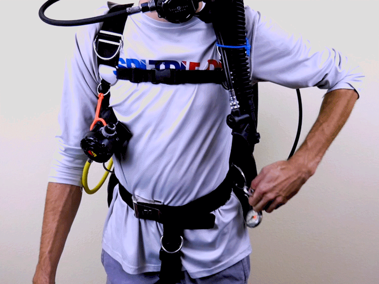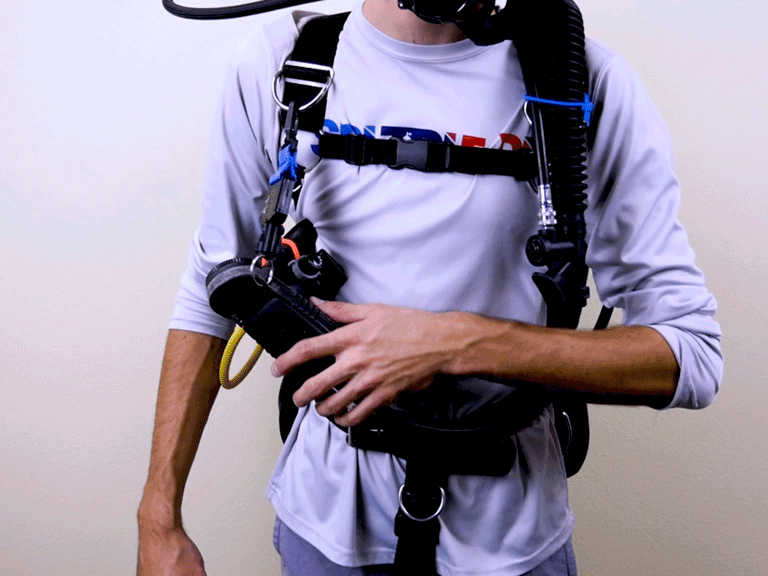 Regardless of which hose configuration you choose, it needs to be streamlined.  This simply means to alter the equipment in a way that helps to reduce drag as you move through the water, reduce the likelihood of damaging the underwater world around you, and avoid entanglement around tighter spaces or obstacles.  Streamlining your hoses can be accomplished by removing unnecessary inches of hosing or stowing hoses in a manner that keeps them neatly tucked away and close to your body.