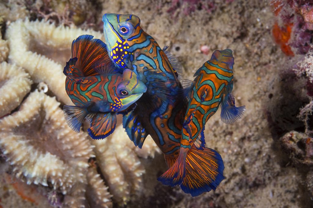 In addition to land-based diving, the Wakatobi archipelago can be explored by liveaboard. Divers can take in sites that include the fish-laden pinnacles near Hoga, thrilling walls at Binongko and the big reefs of Karang Kaledupa and Karang Kapota, where they will find everything from coral-rich shallows to sheer drop-offs. For many, a highlight of visiting this area is Pasarwajo Bay in nearby Buton Island, which offers some of Indonesia’s best muck diving at sites such as Asphalt Pier and Cheeky Beach. This area is also home to Magic Pier, which is famous for the nightly courtship rituals of resident Mandarinfish.